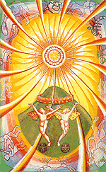 Selbsterfahrung ist immer auch eine Reise durch das "weisse Land der Seele", einer inneren Welt, die wir im Erleben er-fahren. Durch kontinuierliche Selbsterfahrung oder Prozessarbeit bleibt diese innere Landschaft nicht länger ein "weisser Fleck auf der Landkarte", sondern wird farbig und lebendig und voller schöpferischer Kraft - eine sprudelnde Quelle , die - einmal bewusst geöffnet - nicht mehr so schnell versiegt! Das Erschliessen der inneren Quelle von Kraft und Weisheit hilft dem Menschen, sich zu befreien aus der Umklammerung psychischer Konditionierungen oder kollektiver Normen und Wertvorstellungen (weltliche, religiöse, unbewusste Fremdbestimmung). Indem wir unseren tiefen inneren Wurzelgrund im Erleben er-fahren, wird er genauso wirklich und verfügbar wie andere Fähigkeiten und Talente, die uns helfen, unser Leben gut zu meistern; nur stehen wir jetzt auf unserem "EIGENEN, wahren Wesensgrund". Das gibt uns Sicherheit und Freiheit zugleich. Es stärkt unser Selbstvertrauen und unser Vertrauen ins Leben. Kraft ihrer Feinstofflichkeit und Spiritualität verbindet uns die innere Quelle aber auch mit der universellen geistigen Welt und erlöst uns damit von religiöser und seelischer Heimatlosigkeit: Durch eine lebendige, d.h. gelebte Verbindung zu unserer inneren geistigen Quelle, dem SELBST, verankern wir uns wieder in jenem feinstofflichen Wurzelgrund, den MEISTER ECKHARDT das göttliche "fünkelin" nannte, das als Teilhabe des Menschen am göttlichen Bereich ebensowohl im Menschen ist als auch nicht von dieser Welt: "es ist immerfort neu und frisch wie in einem WERDEN ohne Unterlass" - eine sprudelnde Quelle ... ein aus sich rollendes Rad ... wie die universelle schöpferische Kraft selbst. |